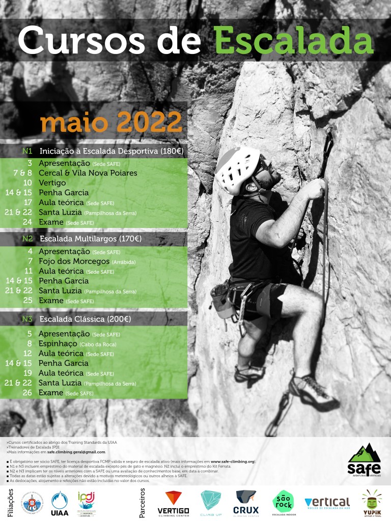 Caros sócios, informamos que já se encontram abertas as inscrições para os cursos de escalada de maio 2022.