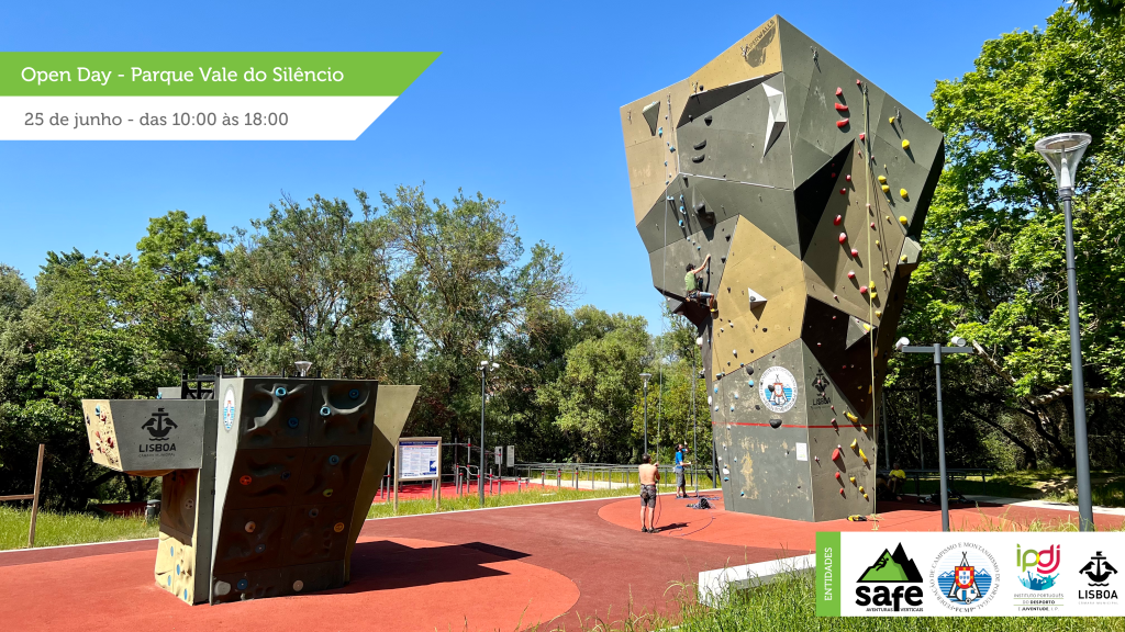 No dia 25 de junho de 2022 vamos estar na Parede de Escalada do Parque do Vale do Silêncio (Ver localização) entre as 10h e as 18h, a orientar uma atividade aberta a pessoas sem experiência de escalada.