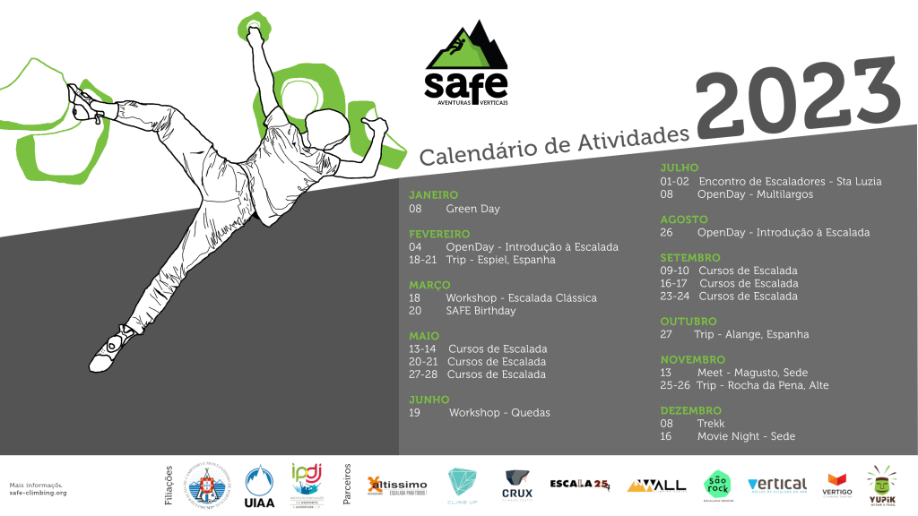 Podem acompanhar todas as atividades, assim como ver como foram as atividades já realizadas no passado na nossa secção safe-climbing.org/atividades.