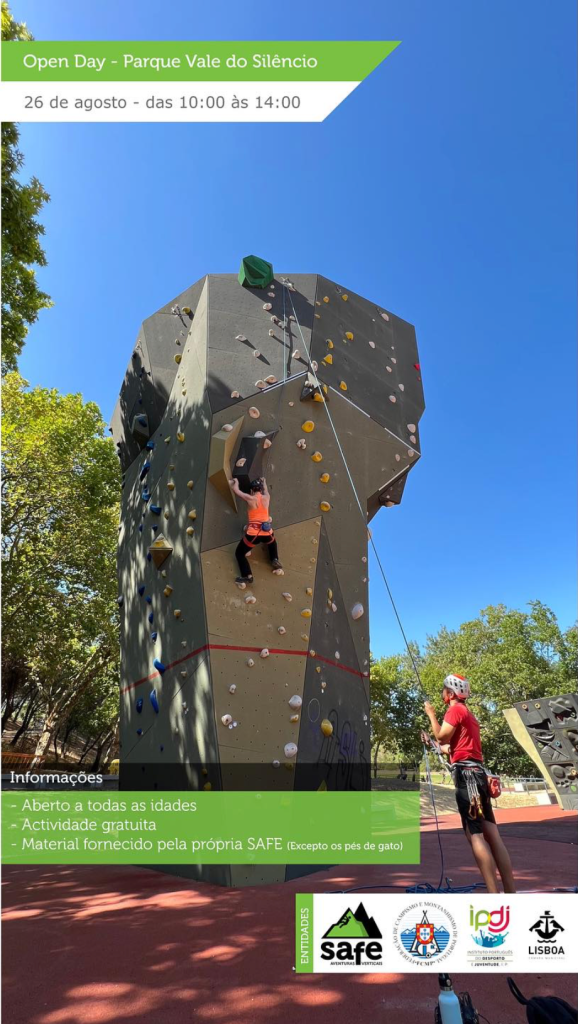 No dia 26 de agosto, vamos estar na Parede de Escalada do Parque do Vale do Silêncio, entre as 10h e as 14h, a orientar uma atividade aberta a pessoas sem experiência de escalada.
