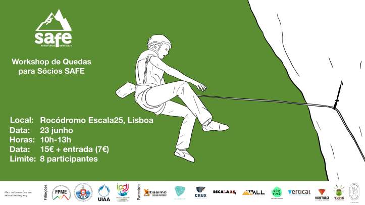 Depois do sucesso do último workshop de quedas, repetimos a fórmula este ano! O workshop tem o intuito de dar as ferramentas necessárias aos escaladores e asseguradores para que consigam treinar as quedas em escalada desportiva de uma forma faseada e segura.